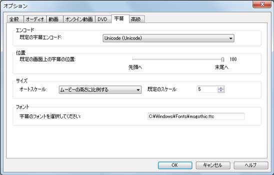 2.字幕のエンコード、サイズなど設置:「オプション--字幕」